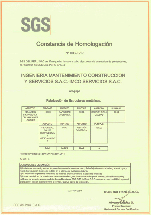 CERTIFICACIONES – CONSTANCIA DE HOMOLOGACION N° 00390-17